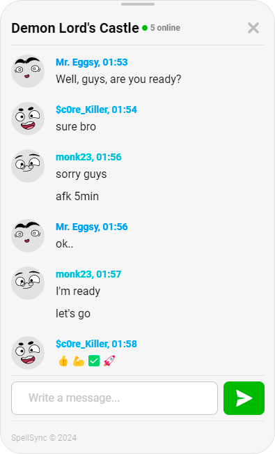 Organize real-time communication between players. Send messages, notifications, create rooms and lobbies.